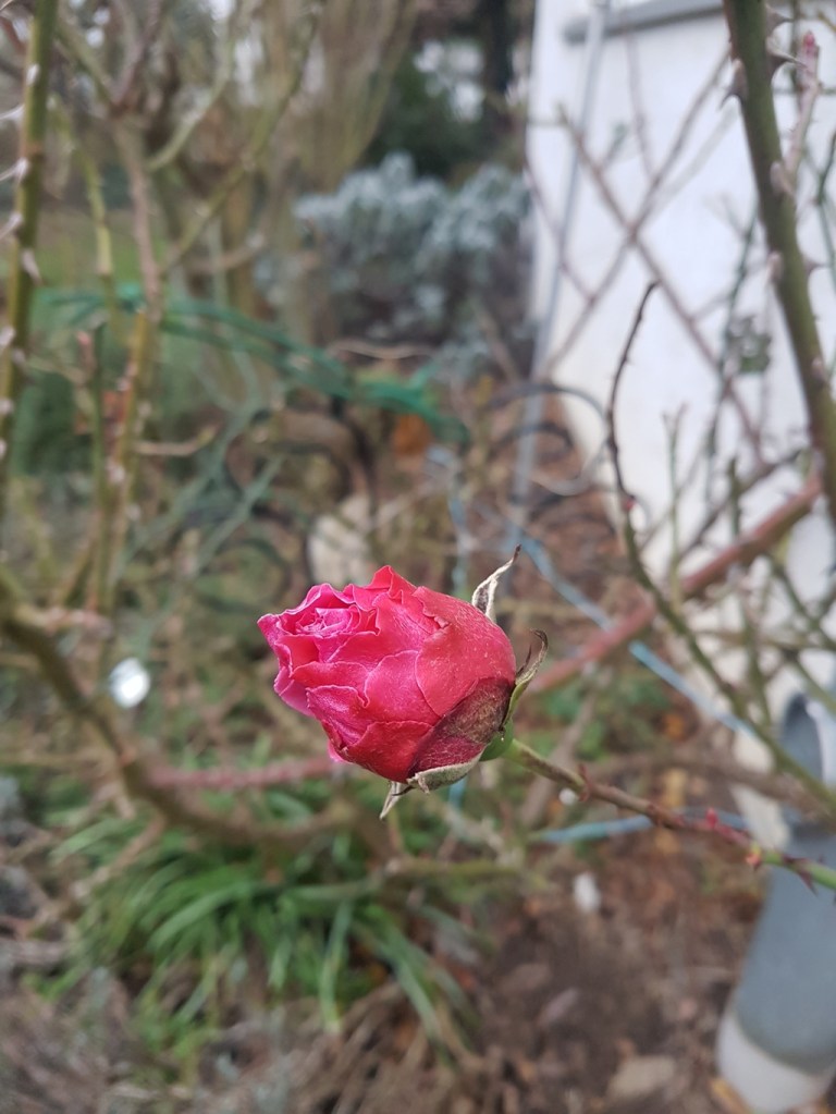 Diese Rosenknospe der Kletterrose ‚Rosarium Uetersen‘ habe ich am 6. Januar mit dem Smartphone aufgenommen. Sie hat Potential, bald zu erblühen.